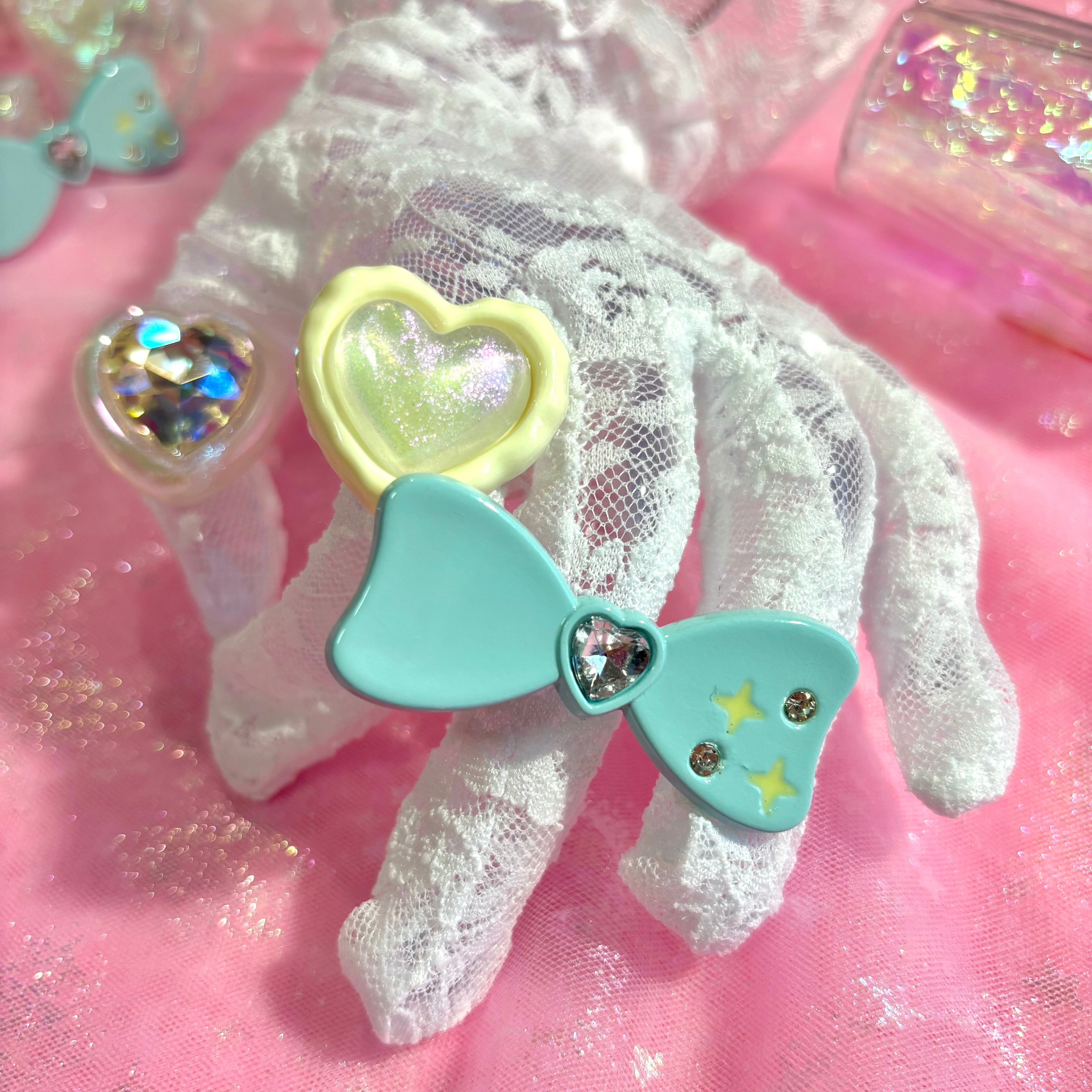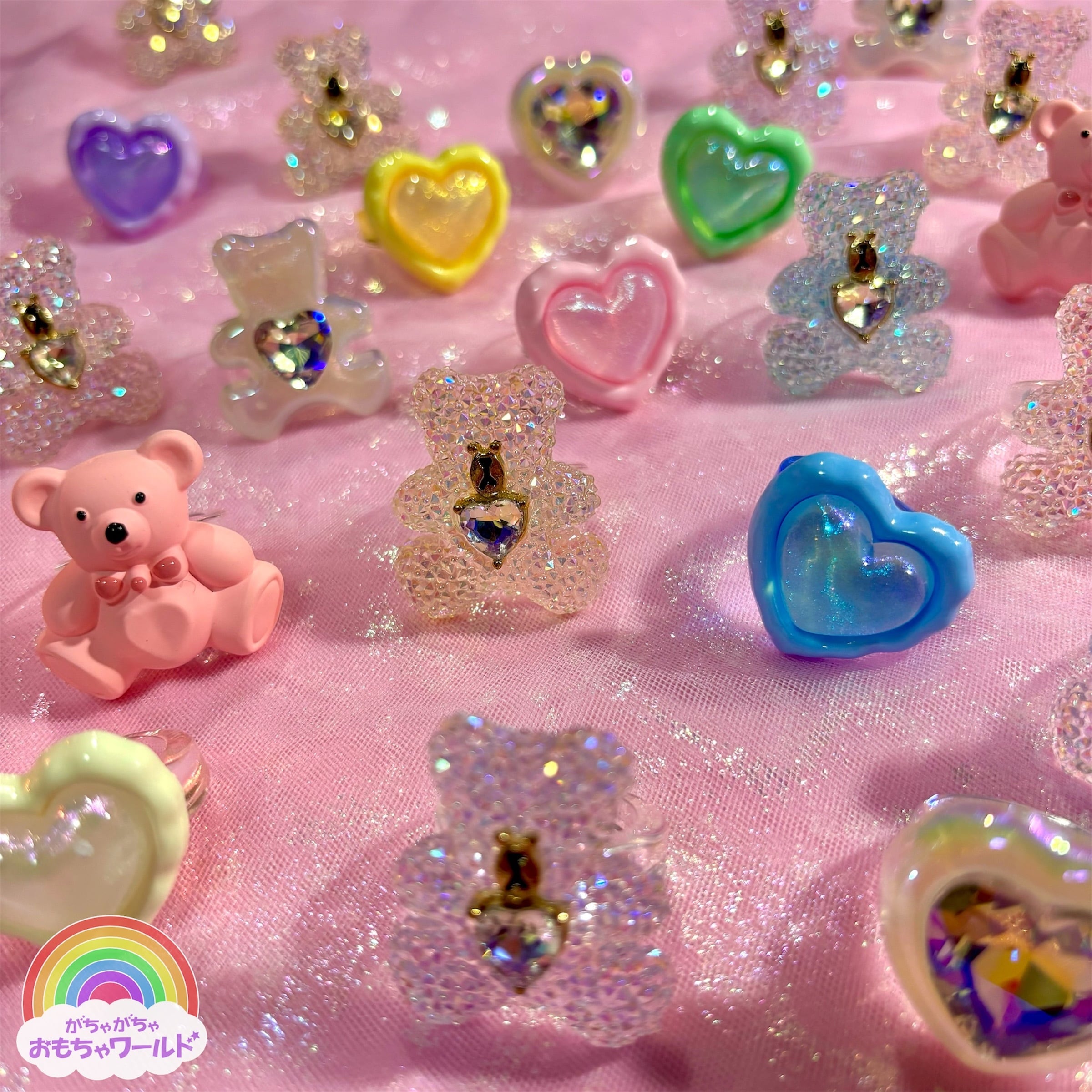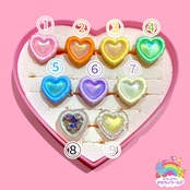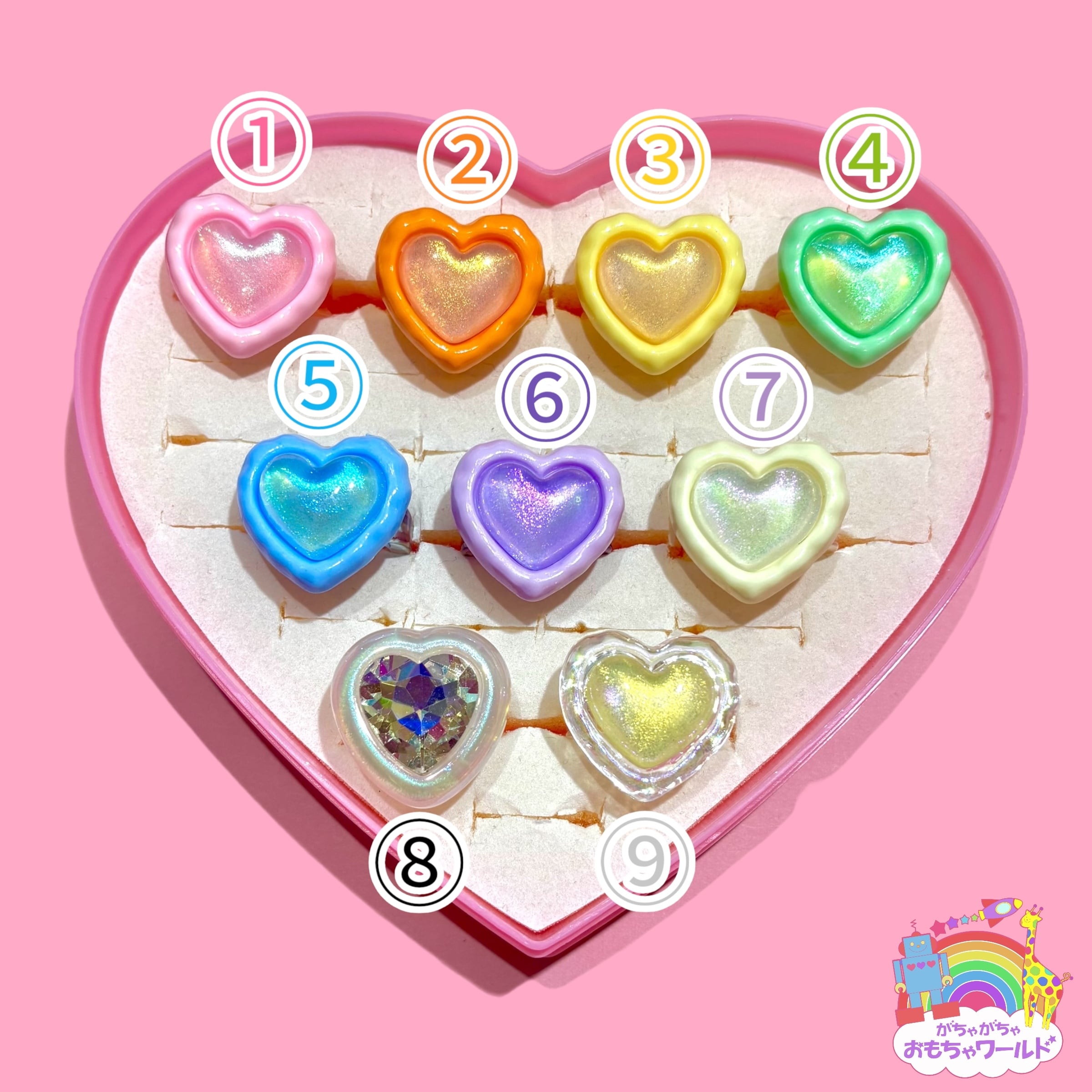プラスチックのカラーフレームとオーロラカラーのハートがかわいいゆびわです♡